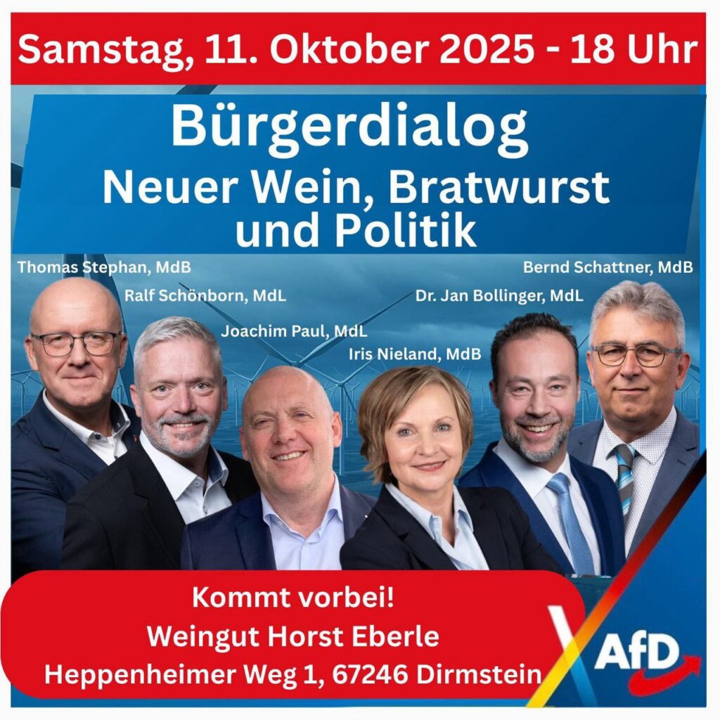Die AfD Bad Dürkheim setzt sich für freie Bürger sowie direkte Demokratie, Gewaltenteilung und Rechtsstaatlichkeit ein. Soziale Marktwirtschaft und Selbstbestimmung sind uns ebenso wichtig wie Föderalismus, Familie und die gelebte Tradition der deutschen Kultur.